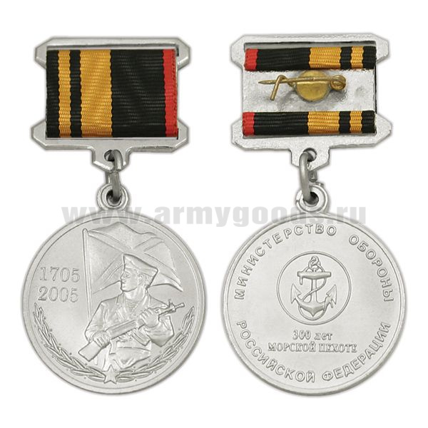 Медаль 300 лет морской пехоте 1705-2005 (МО РФ) (прямоугольная планка - лента)
