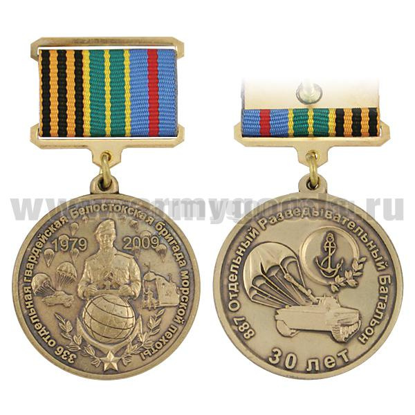 Медаль 30 лет 336 отд. гв. Белостокской бригаде МП 1979-2009 887 отдельный разведывательный батальон (на планке - лента)