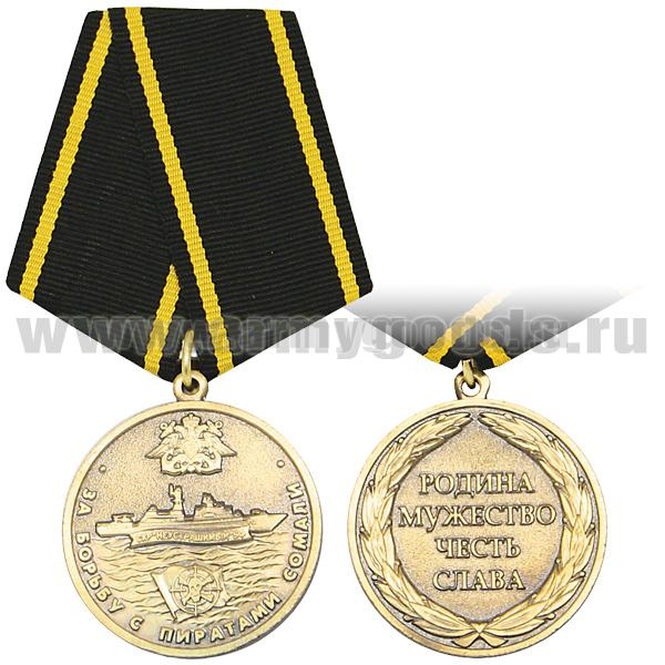 Медаль За борьбу с пиратами Сомали СКР "Неустрашимый" БФ (Родина Мужество Честь Слава) чернен. зол.
