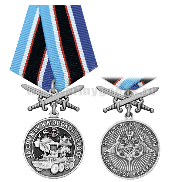 Медаль За службу в морской пехоте (МО РФ) колодка с мечами