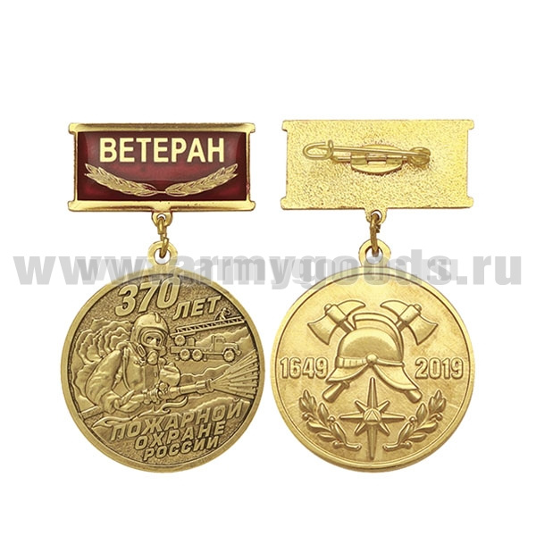 Медаль 370 лет пожарной охране России (1649-2019) (на планке - Ветеран, смола)