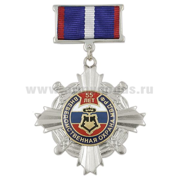 Медаль 55 лет вневедомственной охране МВД РФ (крест с накл., смола, на планке - лента)