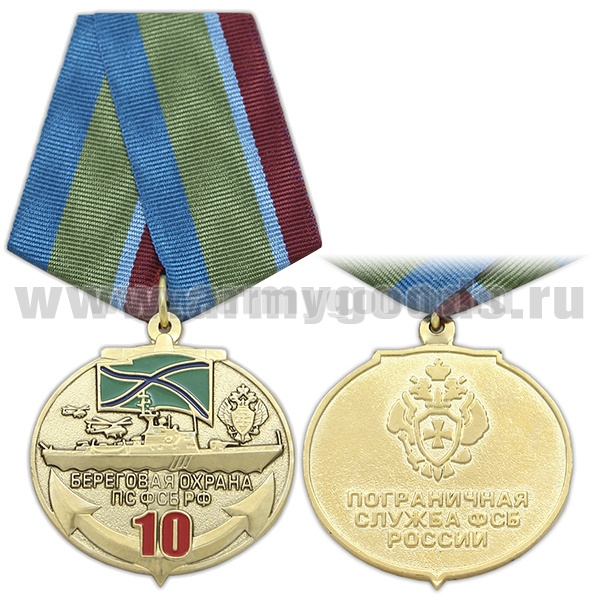Медаль 10 лет Береговой охране ПС ФСБ РФ (Пограничная служба ФСБ России)