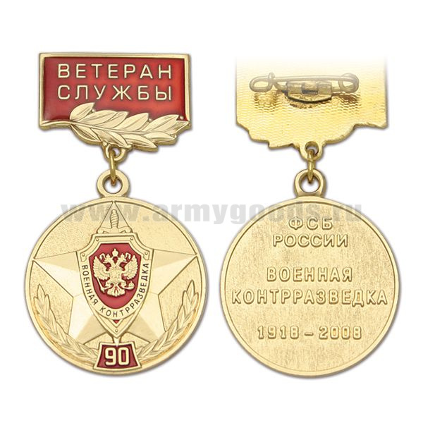 Медаль 90 лет военной контрразведке ФСБ России 1918-2008 (на планке - Ветеран службы, смола)