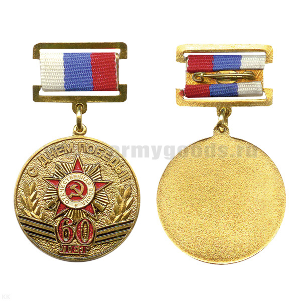 Медаль С днем Победы! 60 лет (на прямоуг. планке - лента РФ)