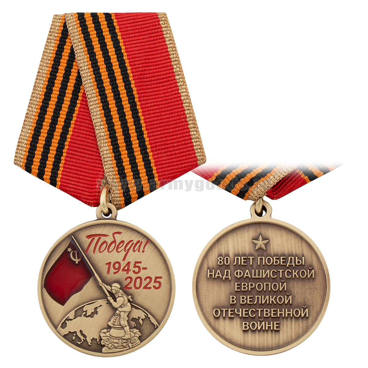 Медаль 80 лет Победы над фашистской Европой в Великой Отечественной войне (воин, водружающий Знамя Победы над зданием Рейхстага)