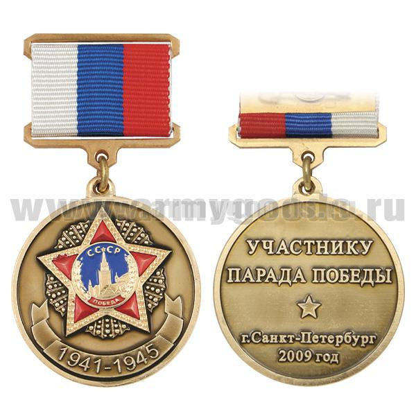 Медаль Участнику Парада Победы г. Санкт-Петербург 2009 г. (на прямоуг. планке - лента РФ)