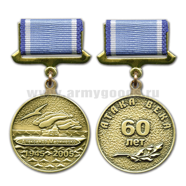 Медаль Александр Маринеско 1945-2005 Атака века 60 лет зол. (на прямоуг. планке - лента)