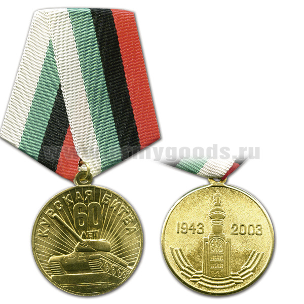 Медаль 1943-2003 Курская битва 60 лет (с изображением танка и звонницы в Прохоровке)