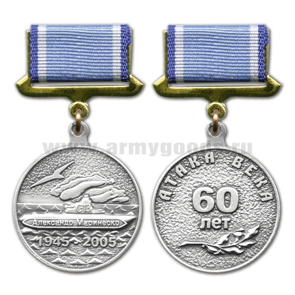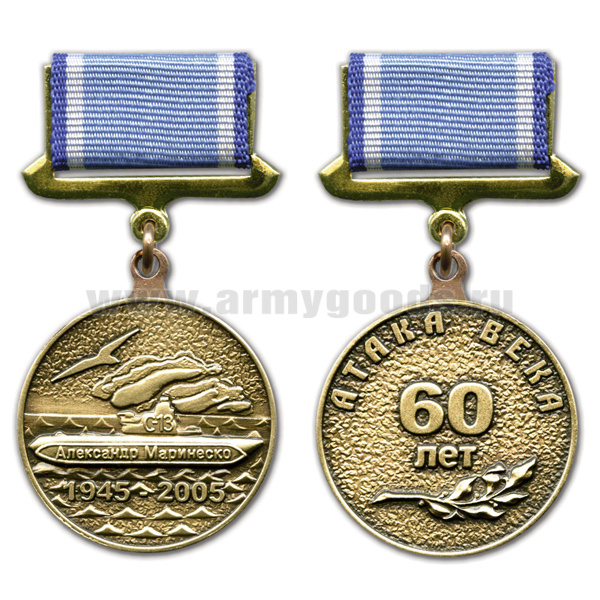 Медаль Александр Маринеско 1945-2005 Атака века 60 лет серебр. (на прямоуг. планке - лента)