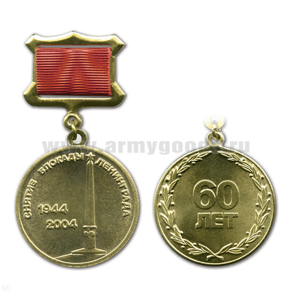 Медаль 60 лет Снятие блокады Ленинграда 1944-2004 (на прямоуг. планке - лента)
