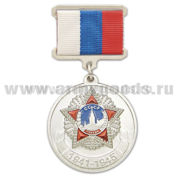 Медаль 1941-1945 (с орденом Победа) серебряная (на планке - лента РФ)