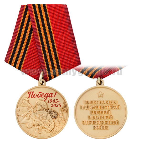 Медаль 80 лет Победы над фашистской Европой в Великой Отечественной войне (два бойца на фоне Кремля)