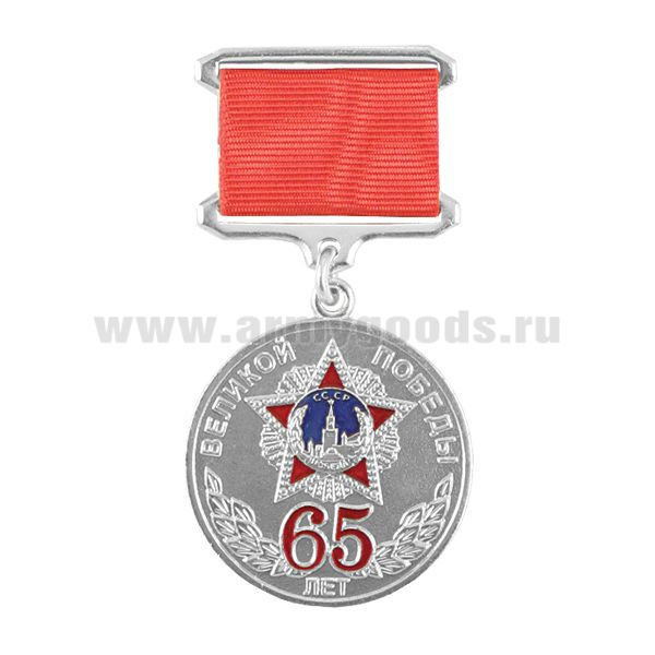 Медаль 65 лет Великой Победы (на планке - лента) серебр.