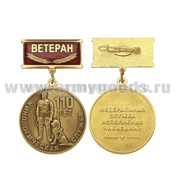 Медаль Кинологическая служба 110 лет (ФСИН) (на планке - Ветеран, смола)