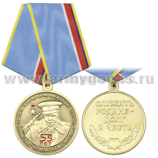 Медаль Гагарин Ю.А. 55 лет со дня первого полета человека в космос (Служить Родине - Долг и Честь)