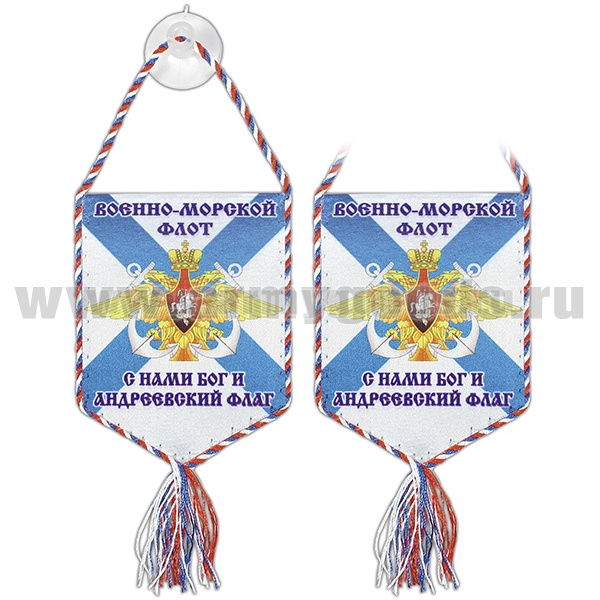 Вымпел шелкография автомоб. на присоске ВМФ (С нами Бог и Андреевский флаг) пятиуг.