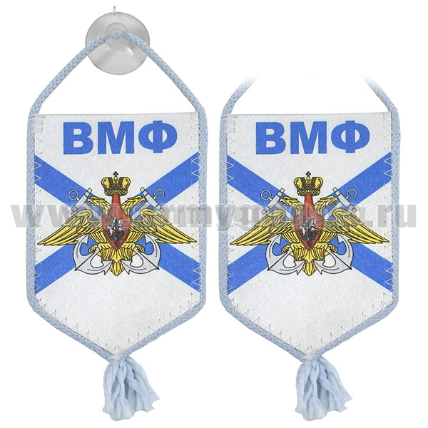 Вымпел шелкография автомоб. на присоске ВМФ (Андреевский флаг с орлом ВМФ) пятиугольный