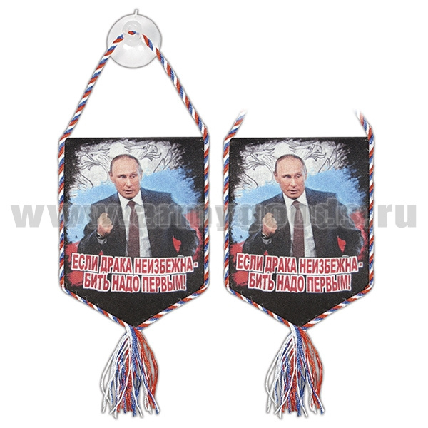 Вымпел шелкография автомобильный на присоске Если драка неизбежна - бить надо первым! (Путин В.В.)