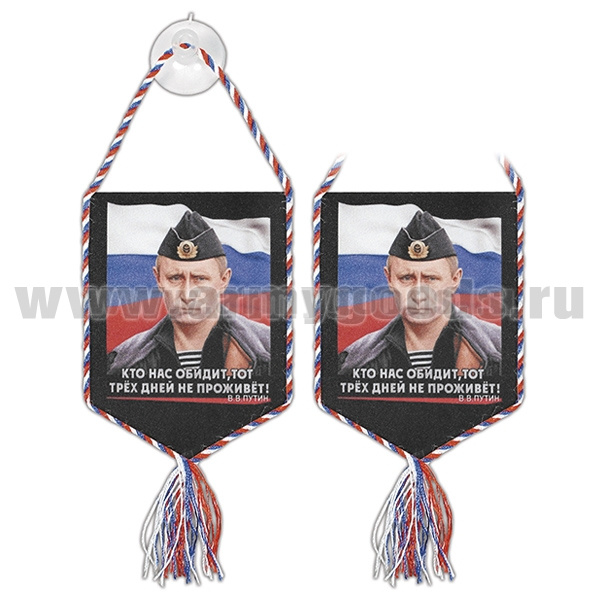 Вымпел шелкография автомобильный на присоске Кто нас обидит, тот трех дней не проживет! (Путин В.В.)