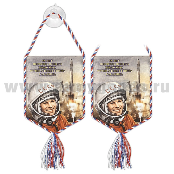 Вымпел шелкография автомобильный на присоске 55 лет первого полета в космос Ю.А. Гагарина