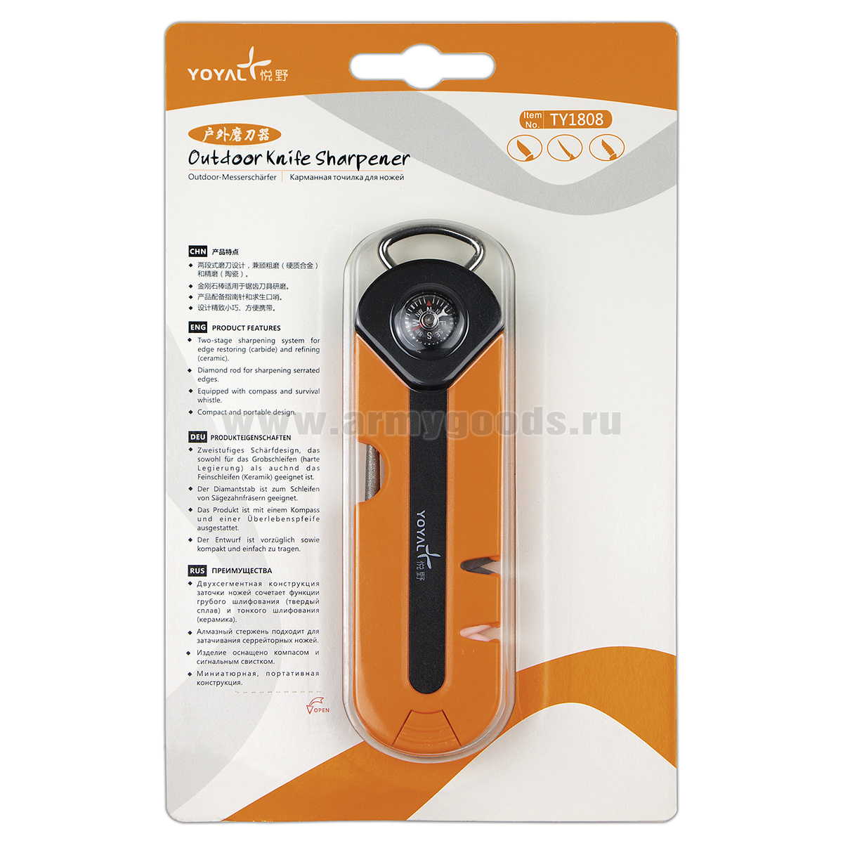 Точилка для ножей двойная с компасом и сигнальным свистком (TY1808)