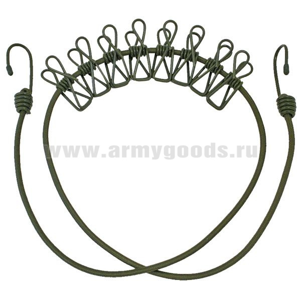 Веревка бельевая (резинка) с крючками и прищепками (110 см)