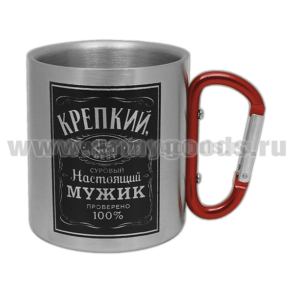 Кружка с ручкой-карабином Крепкий, суровый, настоящий мужик (За настоящих мужиков) (300 мл)