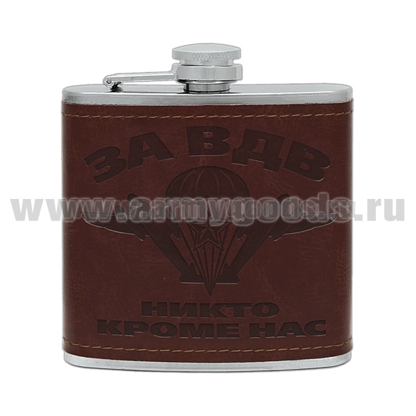 Фляга (нерж. сталь) с тиснением на коже За ВДВ Никто кроме нас (6 oz (180 мл)