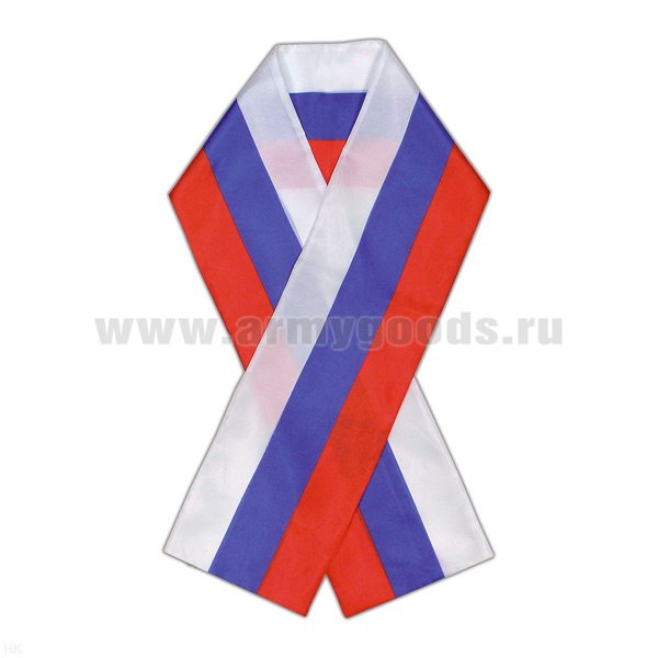 Шарфик сувенирный в виде российского флага (тонкий) синтетика 100% 15х120 см