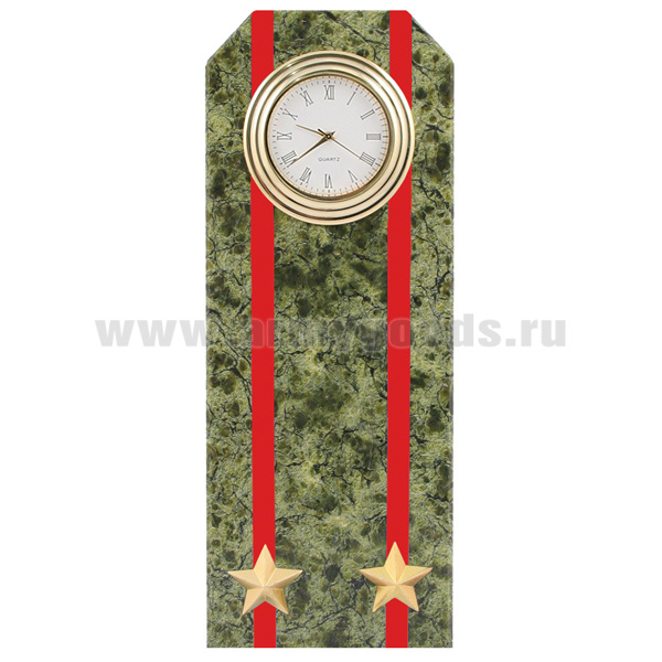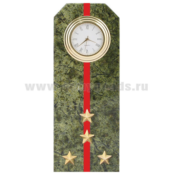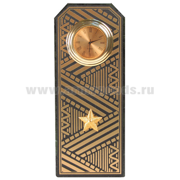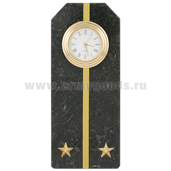 Часы сувенирные настольные (камень змеевик черный) Погон Генерал-майор зол.