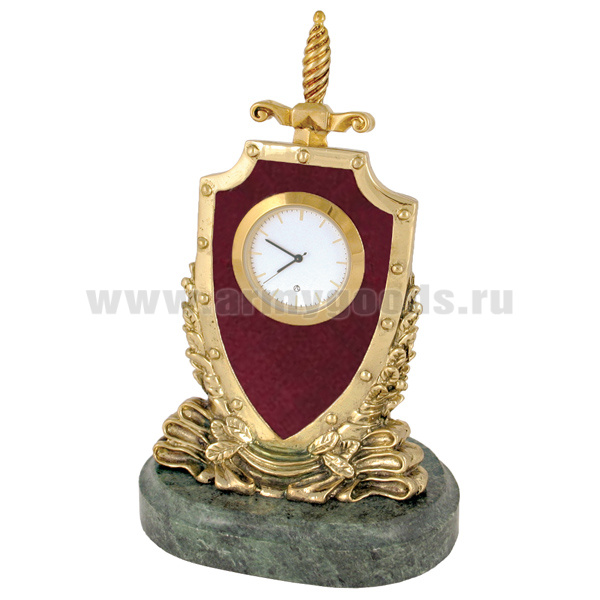 Часы сувенирные настольные (литье бронза, камень змеевик зеленый) Щит и меч
