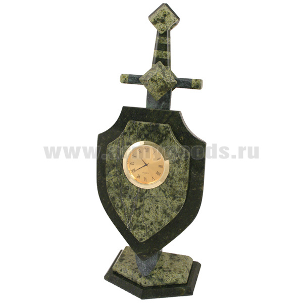 Часы сувенирные настольные (камень змеевик зеленый) Щит и меч
