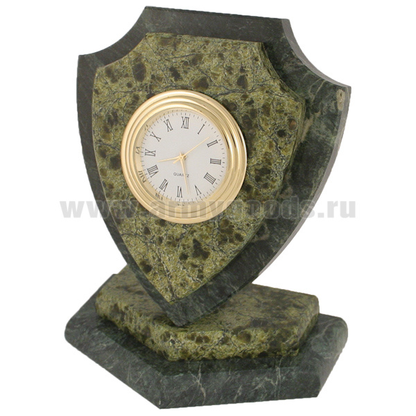 Часы сувенирные настольные (камень змеевик зеленый) Щит