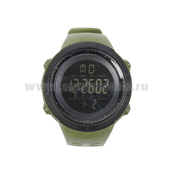 Часы наручные электронные (водонепроницаемые 5 атм) с полимерным формованным ремешком оливковые/кмф олив. по наличию на складе