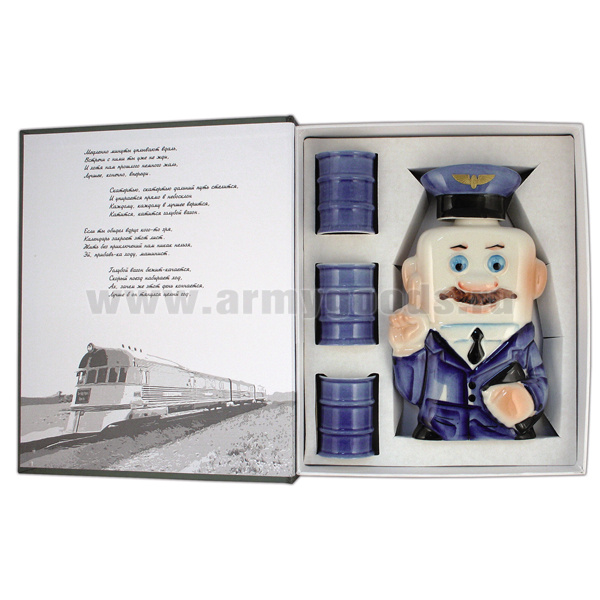 Фляга фарф. (0,25 л) + 3 рюмки в книжке-обманке Железнодорожник