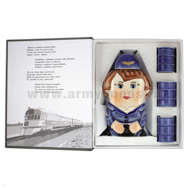 Фляга фарф. (0,25 л) + 3 рюмки в книжке-обманке Проводница