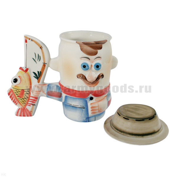 Кружка фарф. (0,5 л) с крышкой Рыбак