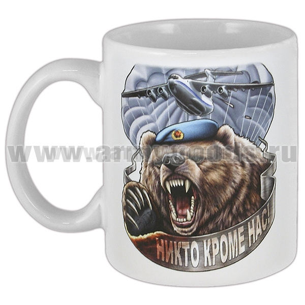 Кружка фарф. (0,3 л) ВДВ (Не смотря на возраст, каждый помнит из нас...) медведь на фоне парашюта