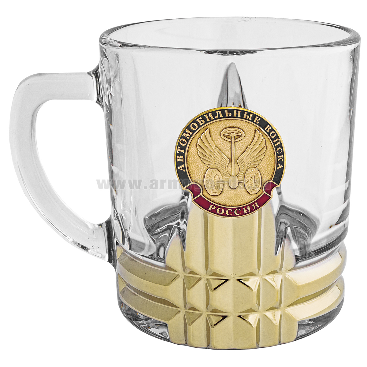 Кружка стекло (0,25 л) с металлизированным напылением и мет накладкой Автомобильные войска