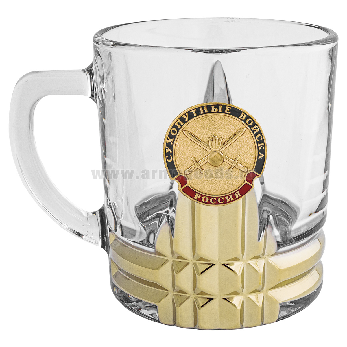 Кружка стекло (0,25 л) с металлизированным напылением и мет накладкой Сухопутные войска