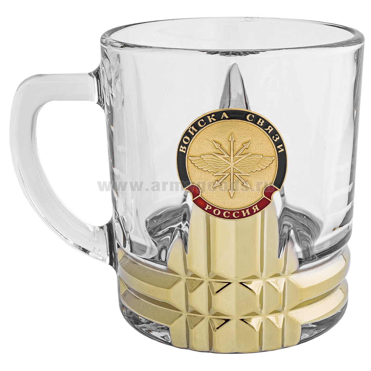 Кружка стекло (0,25 л) с металлизированным напылением и мет накладкой Войска связи