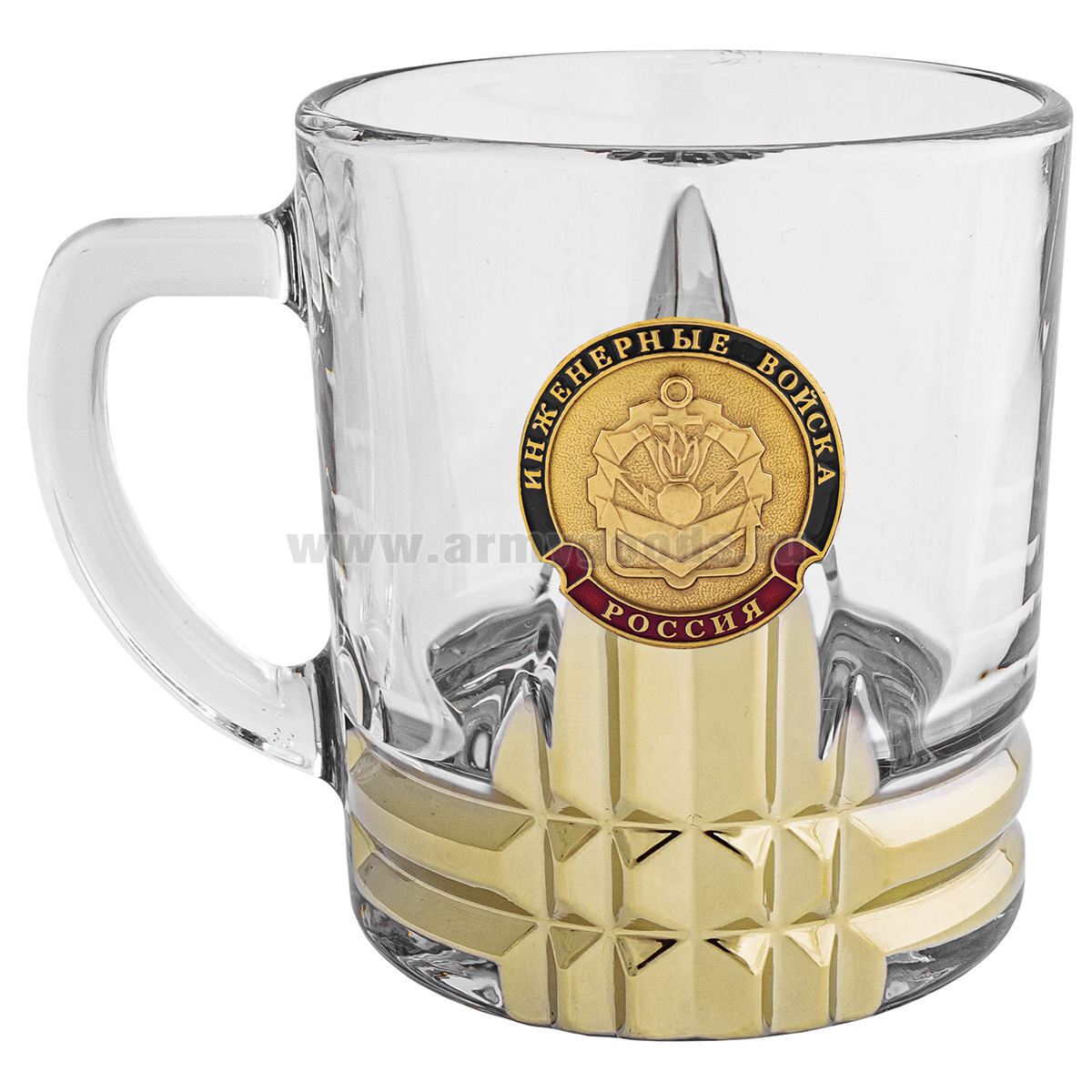 Кружка стекло (0,25 л) с металлизированным напылением и мет накладкой Инженерные войска