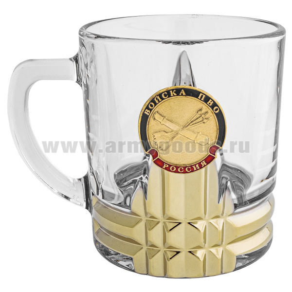Кружка стекло (0,25 л) с металлизированным напылением и мет накладкой Войска ПВО