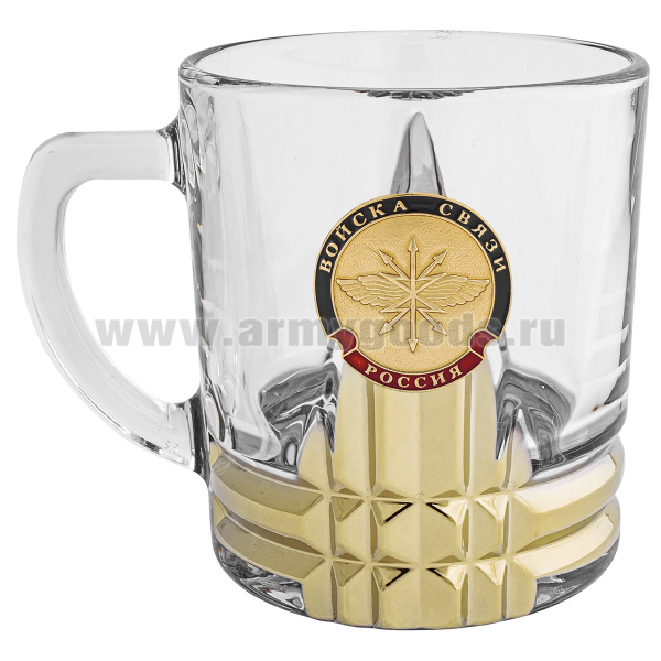 Кружка стекло (0,25 л) с металлизированным напылением и мет накладкой Войска связи