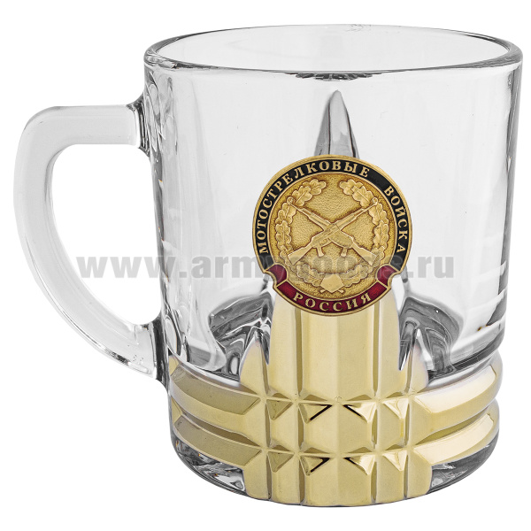 Кружка стекло (0,25 л) с металлизированным напылением и мет накладкой Мотострелковые войска