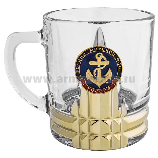 Кружка стекло (0,25 л) с металлизированным напылением и мет накладкой ВМФ