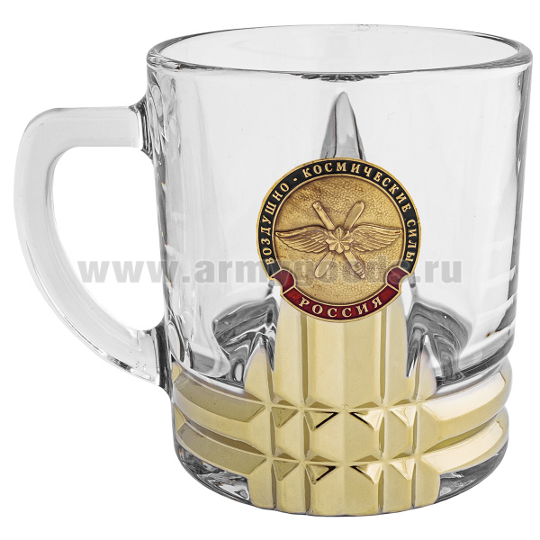 Кружка стекло (0,25 л) с металлизированным напылением и мет накладкой Воздушно-космические силы