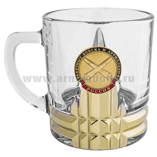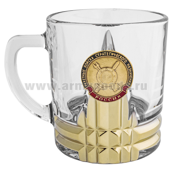 Кружка стекло (0,25 л) с металлизированным напылением и мет накладкой РВСН