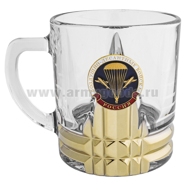 Кружка стекло (0,25 л) с металлизированным напылением и мет накладкой ВДВ